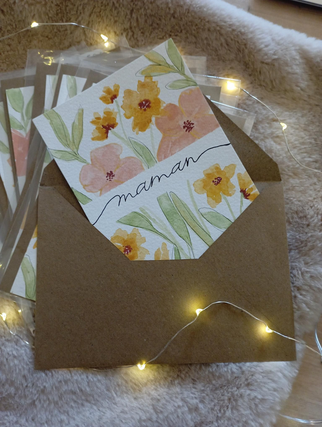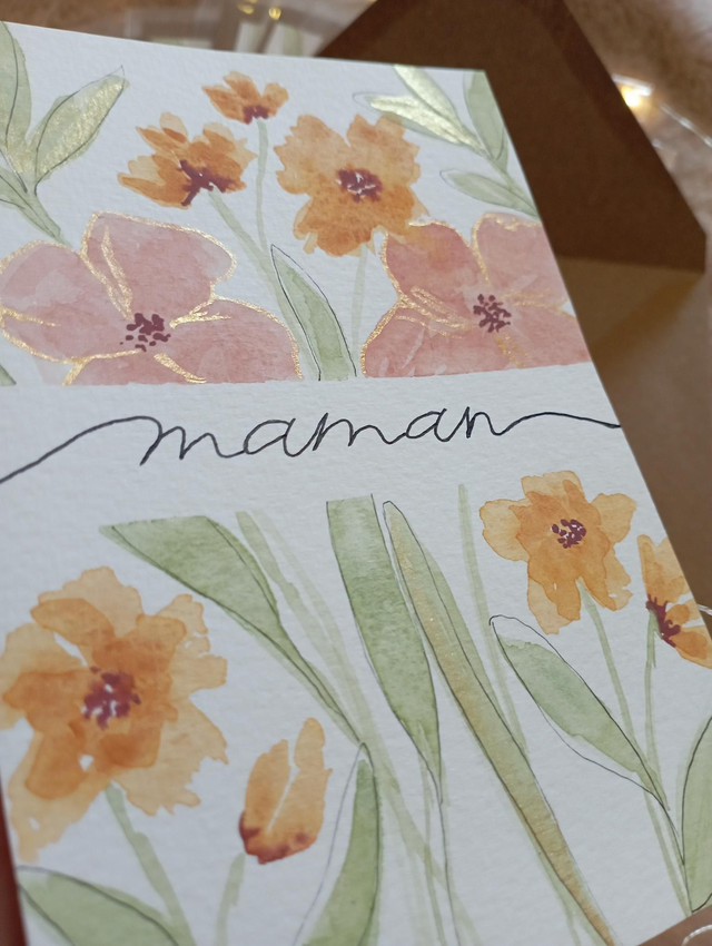 Offrez à votre maman, une carte peinte à la main avec délicatesse à l'aquarelle, une carte unique de fleurs éclatantes et brillantes.
