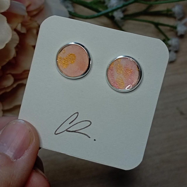 Boucles d'oreilles en acier inoxydable argenté ayant dans son coeur une aquarelle unique recouverte de résine UV, très résistante.